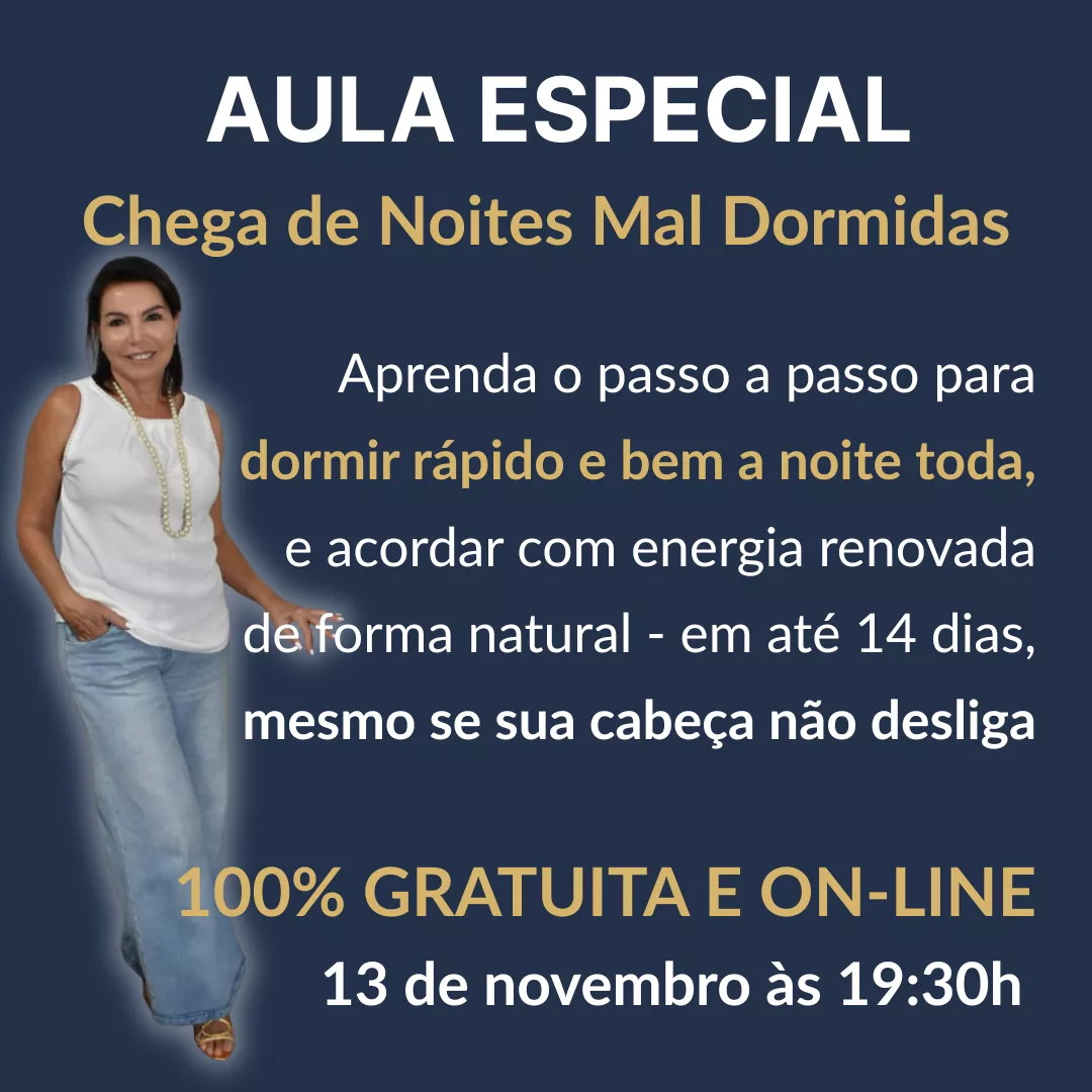 Dia 13/11 às 19:30h - Nesta aula eu vou te mostrar o caminho para noites de sono reparador, mesmo se você já tenha tentado de tudo.